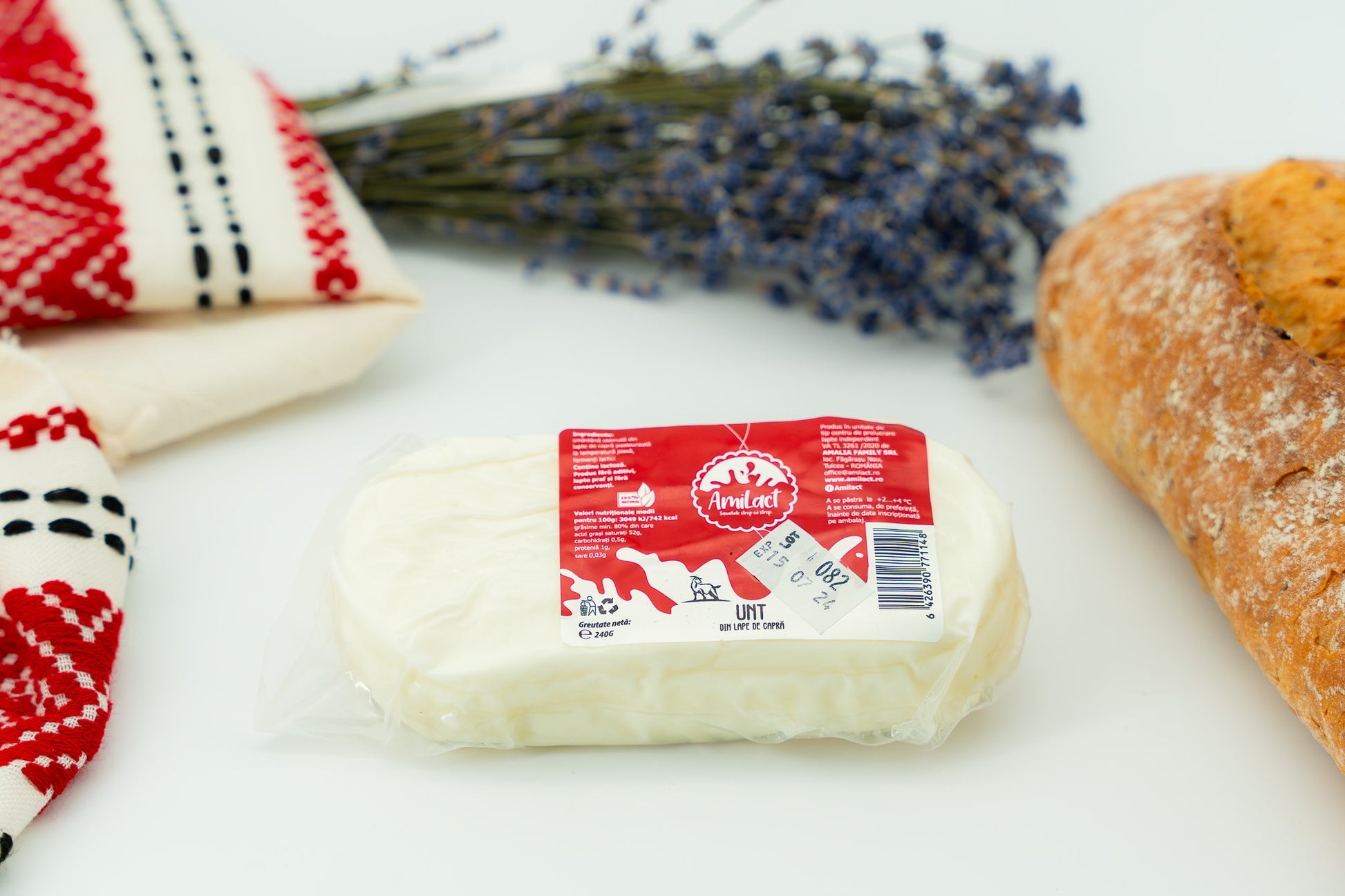 Untul din lapte de capră este un produs lactat fin și cremos, cu o aromă delicată, ușor distinctă, caracteristică laptelui de capră. Este ideal pentru a adăuga savoare preparatelor tale, fiind perfect pentru gătit, prăjit sau pentru a fi consumat ca atare pe pâine sau în sandwich-uri. Acest unt are o consistență bogată și un gust rafinat, fiind o alegere excelentă pentru cei care apreciază produsele din lapte de capră.