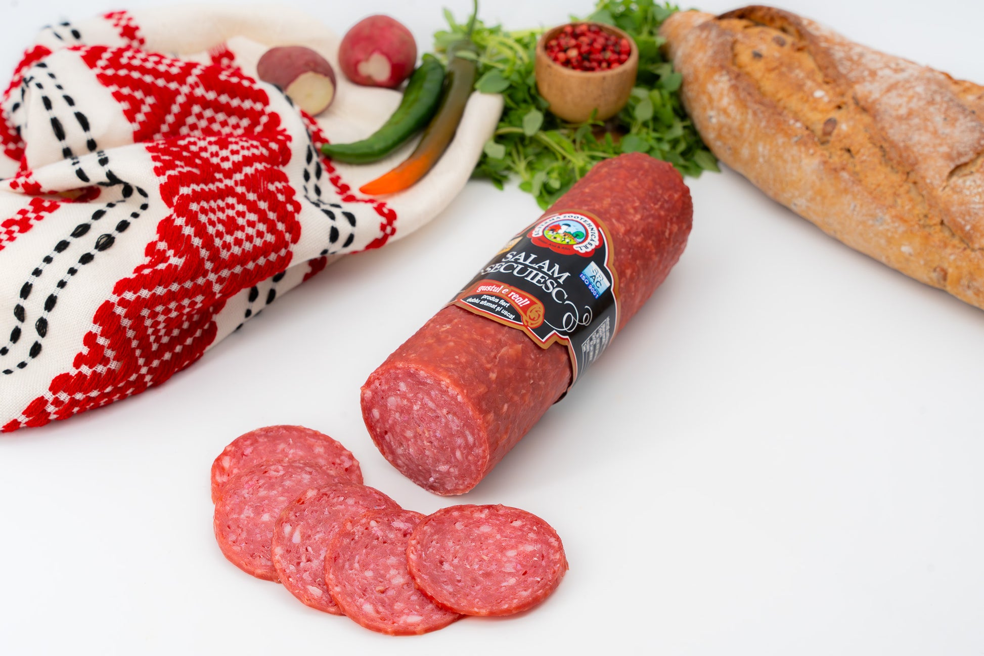 Salamul secuiesc este un mezel tradițional, preparat din carne de porc de calitate, condimentat cu mirodenii specifice regiunii Secuime și afumat natural pentru un gust intens și o aromă autentică. Cu o textură fermă și un gust echilibrat, acest salam este ideal pentru platouri de mezeluri, sandvișuri sau gustări, aducând un plus de savoare meselor tale